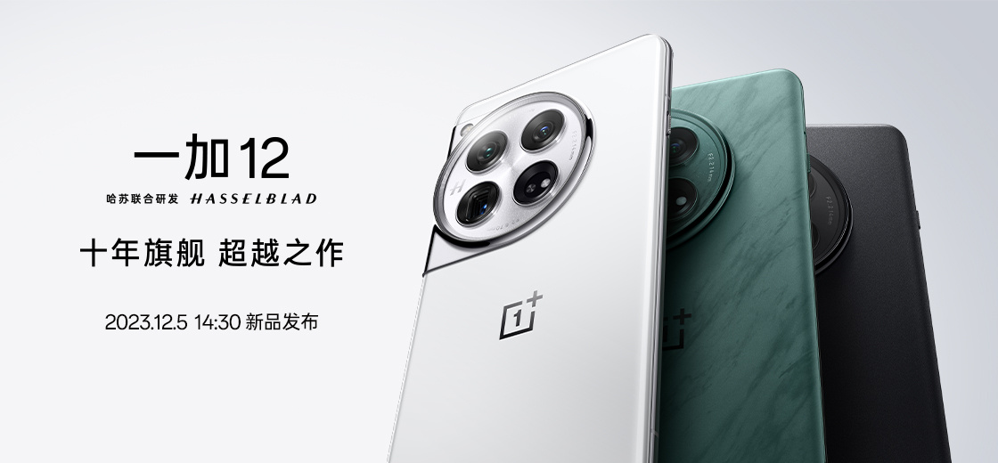 一加官方今日宣布,一加 12将于12月5日14:30发布,号称“十年旗舰,超越之作”。一加 12有留白、苍绿、岩黑三种配色。据悉,一加 12留白配色将采用新一代陶瓷玻璃工艺,苍绿配色将采用新一代叠翠玻璃工艺,岩黑配色将采用新一代丝绸玻璃工艺。