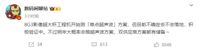 据博主数码闲聊站消息,搭载骁龙8 Gen 3处理器的影像超大杯工程机开始测试单点超声波方案,且目前正在积极验证能否落地。结合相关爆料,这款工程机很可能指的是小米14 Ultra,这将意味着, 小米14 Ultra可能会是小米14系列唯一支持超声波指纹的高端旗舰。