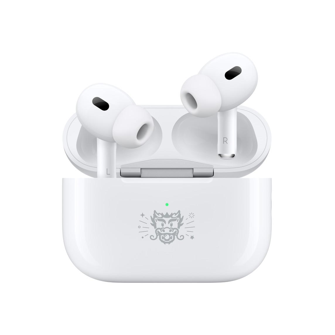 充电盒上的龙头表情符号镌刻在正面,包装盒上的龙头表情符号则采用了醒目的红色设计。除此之外,第二代AirPods Pro龙年特别款在硬件功能方面与普通版保持一致。