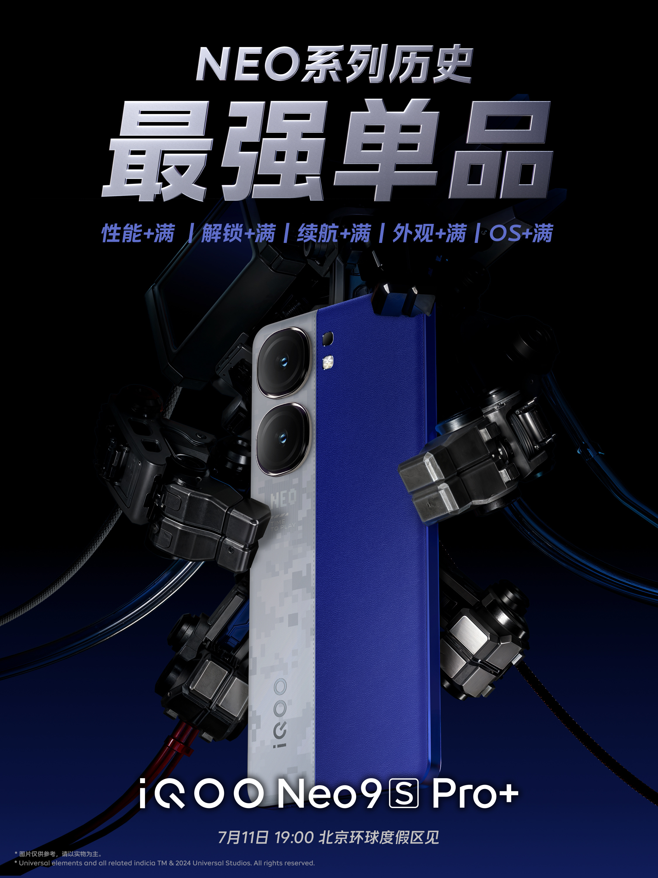 iQOO官方正式宣布,iQOO Neo9S Pro+将于7月11日19:00在北京环球度假区发布。