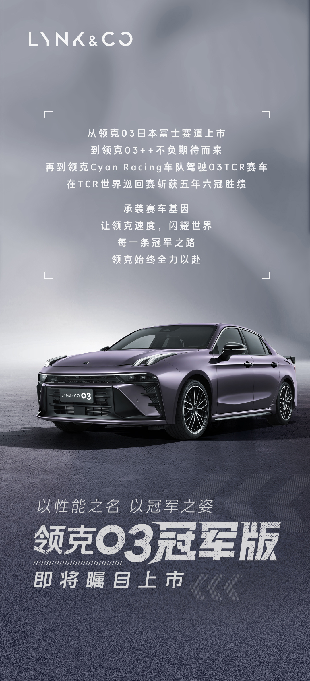8月23日,领克汽车官方宣布,领克03冠军版将于8月28日18:00正式上市。根据此前的预热信息来看,该车将沿用领克家族式设计语言,并加入了如黑色运动件、碳纤维尾翼、全新的配色等设计元素。