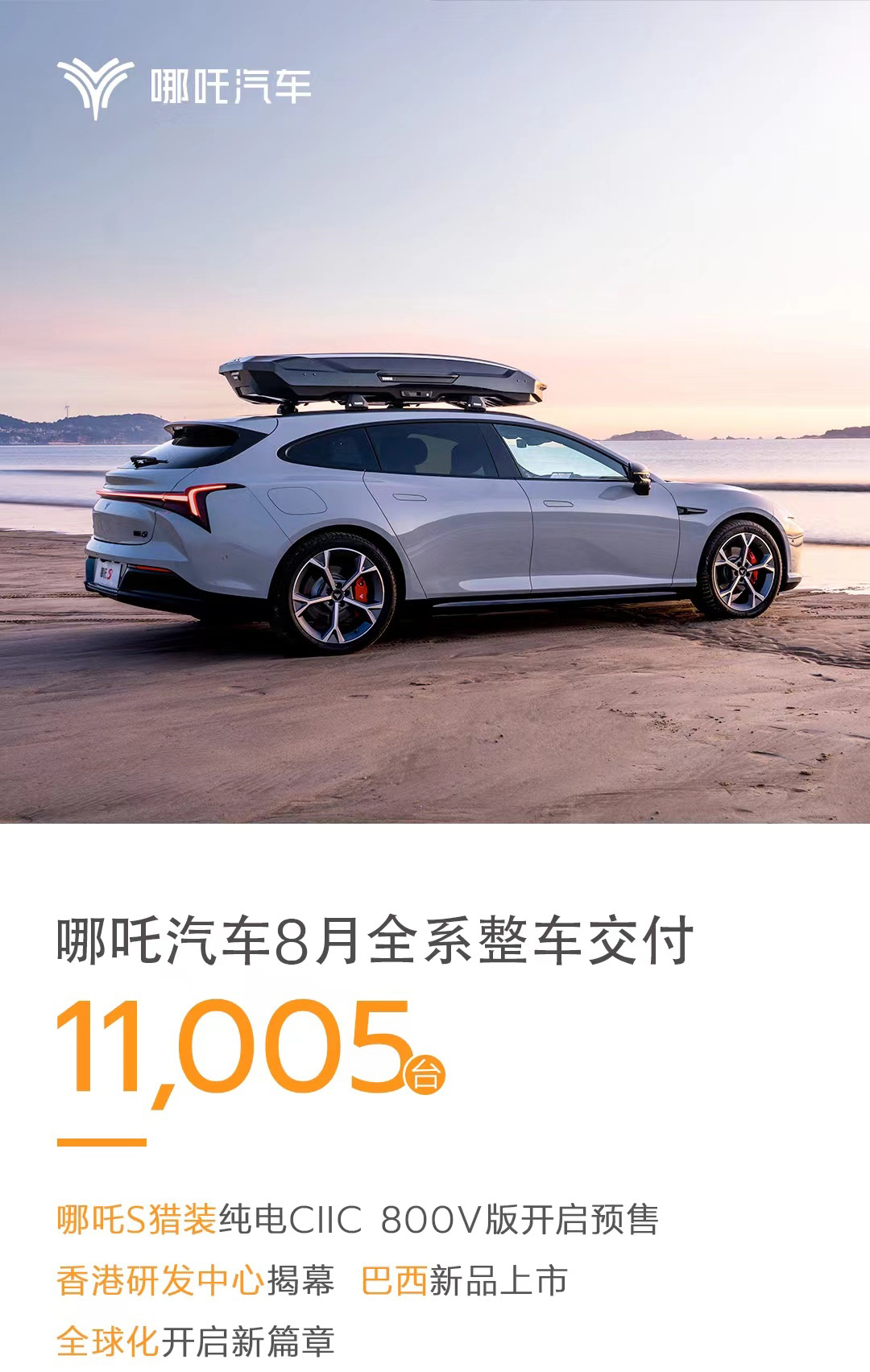 日前,据哪吒汽车官方消息显示:哪吒汽车8月全系整车交付11005台,继7月交付达到11015台后,销量再次突破万辆大关。官方同时宣布哪吒S猎装纯电CIIC 800V版开启预售,售价18.99万元起。