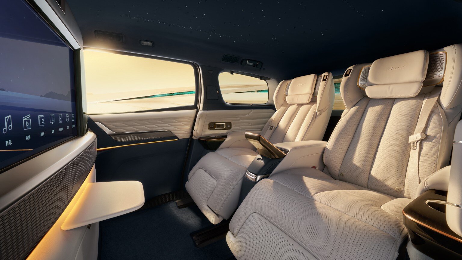 内饰方面,该车配有32吋可升降智能屏、15.6吋后舱智慧屏、Biocare智能生物净舱系统、全新一代VCS智感座舱和流光星空穹顶等,同时还配备了第二排云感礼宾座椅,行业首次量产采用12层座椅结构及悬浮层设计,支持智能滑轨一键随停和18向分区随心调节功能,可带来全新升级的座舱体验。