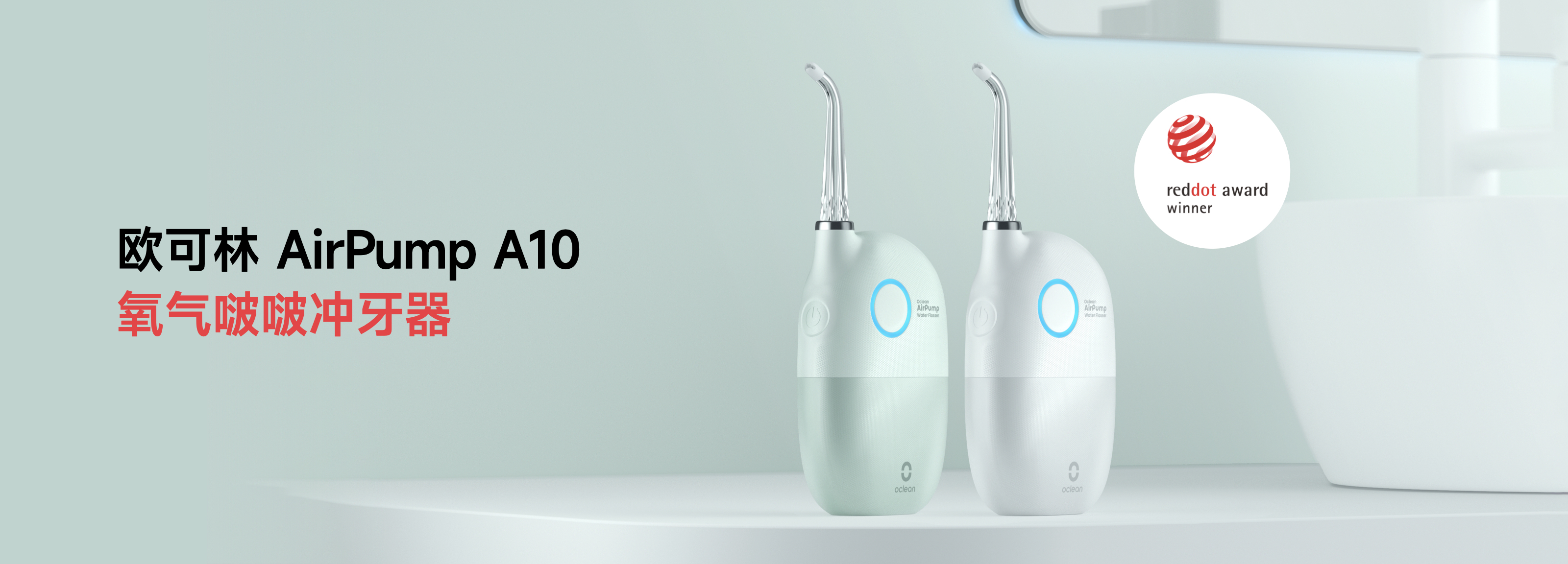 欧可林AirPump A10氧气啵啵冲牙器有两款清新治愈的色彩款式:浅云白和薄荷绿,产品设计获得了RedDot Award红点设计奖,这一奖项是对其设计创新和用户体验的高度认可。