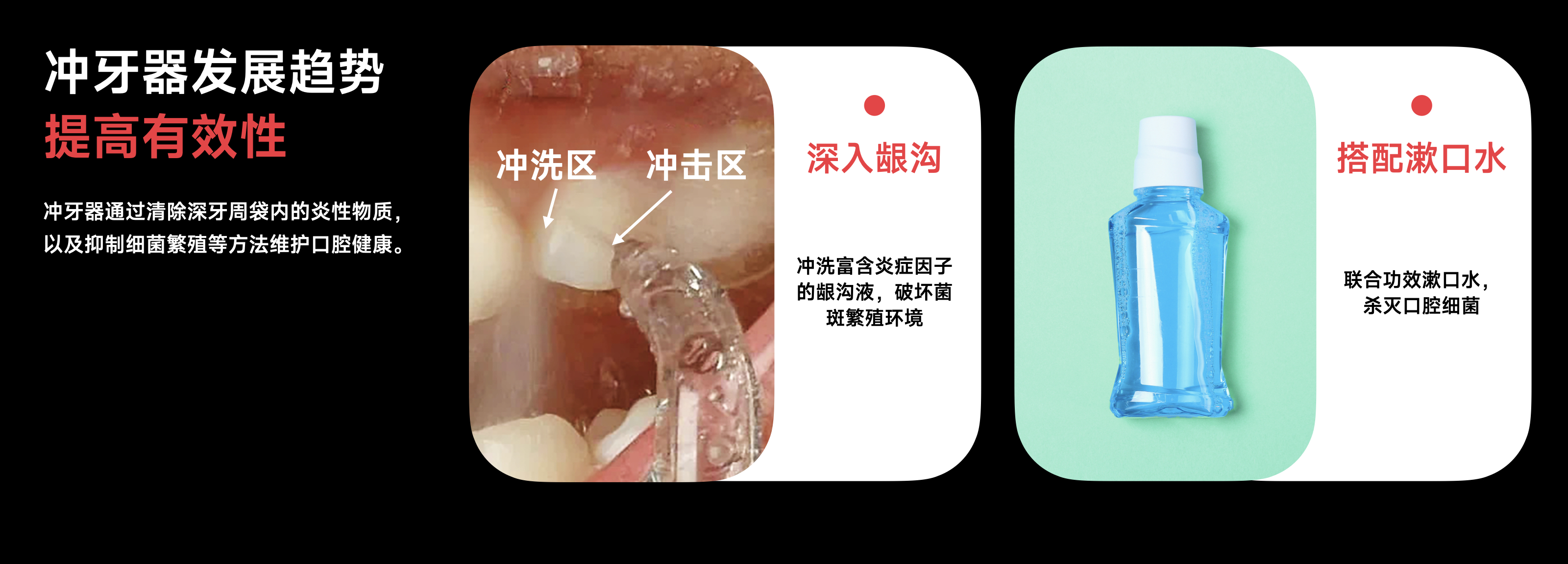 李刚教授特别强调,冲牙器不仅能够清除牙菌斑,还可以通过高压水流进入龈下,帮助阻断龈下菌斑的定植与繁殖。有的冲牙器还带有专门的进气孔,使冲出的水柱中富含微气泡,对邻间隙和牙周袋等位置的厌氧菌起到抑制作用。因此,冲牙器在预防和控制口腔疾病方面具有重要的应用价值。