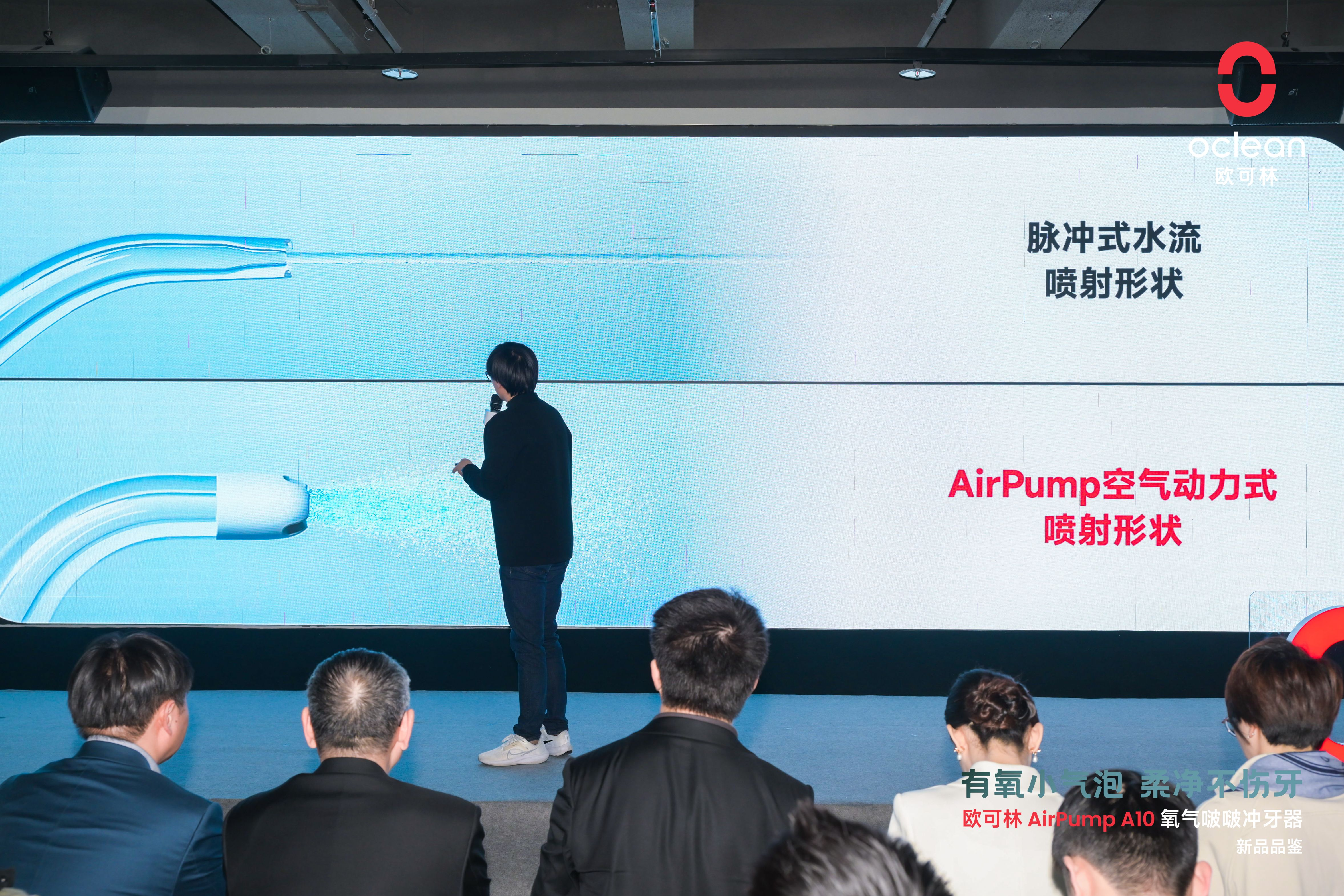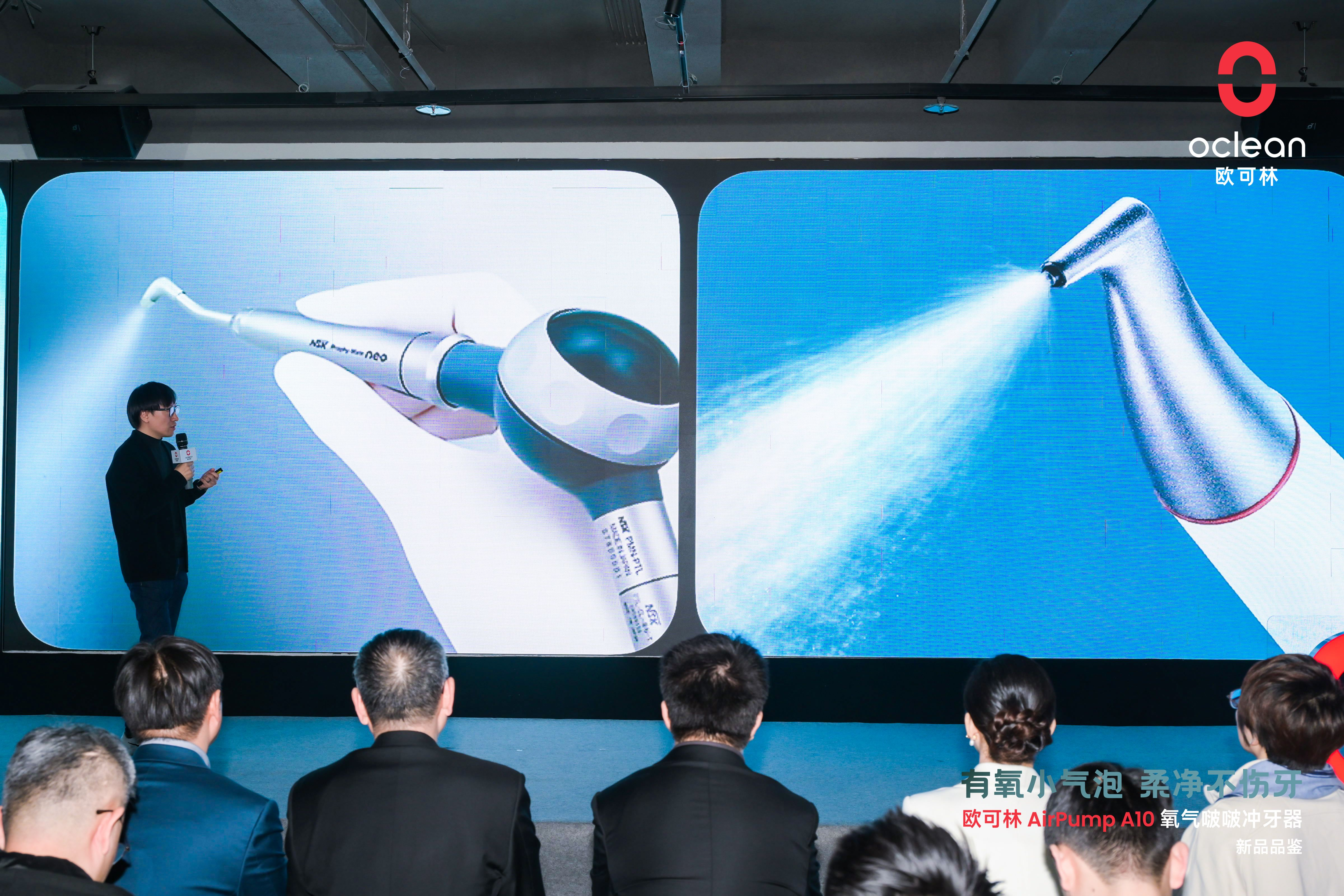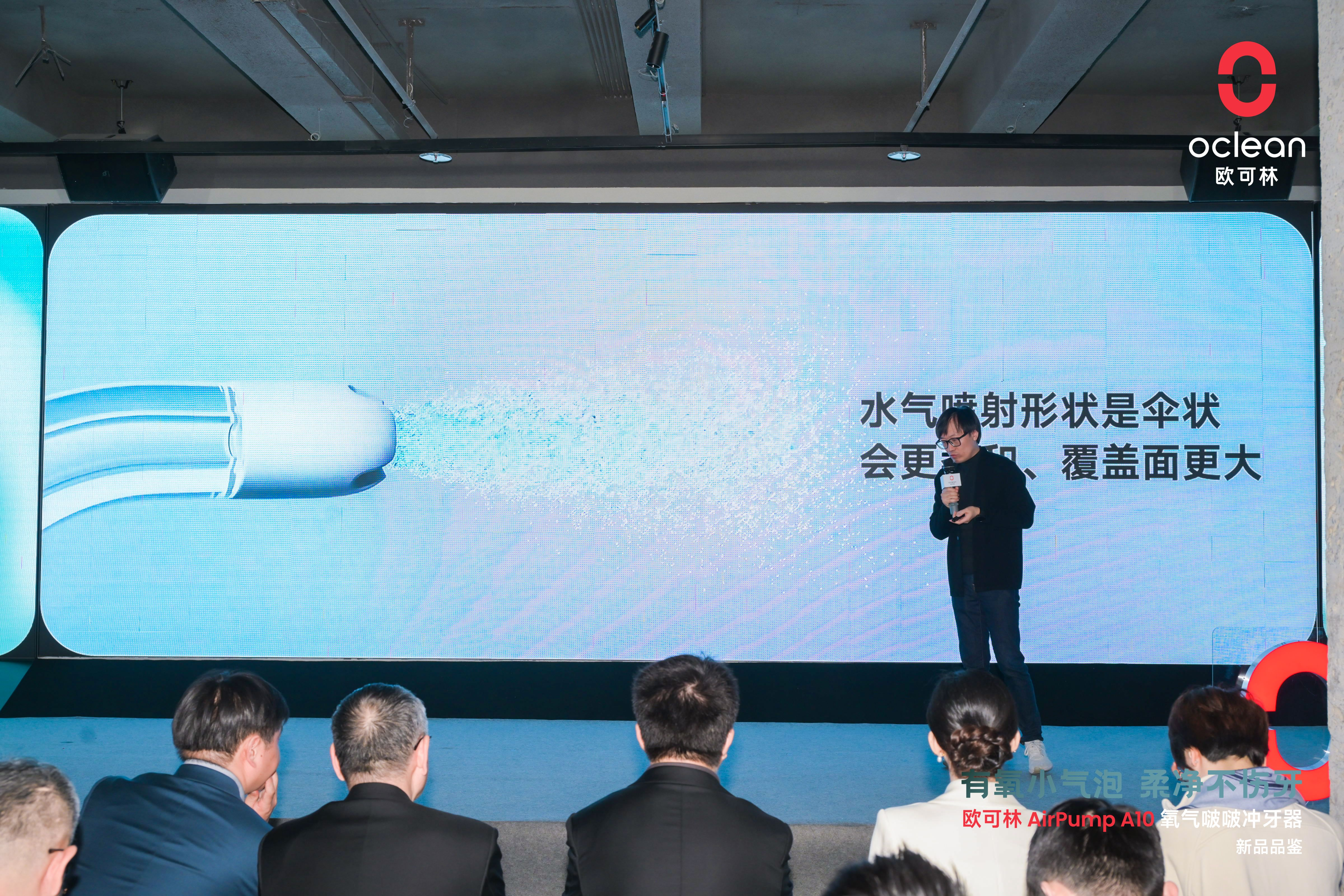 接下来,欧可林健康科技联合创始人&产品设计总监宋侃详细介绍了欧可林AirPump A10氧气啵啵冲牙器的设计理念、技术创新以及市场定位,分享了欧可林在口腔护理领域的最新动态。