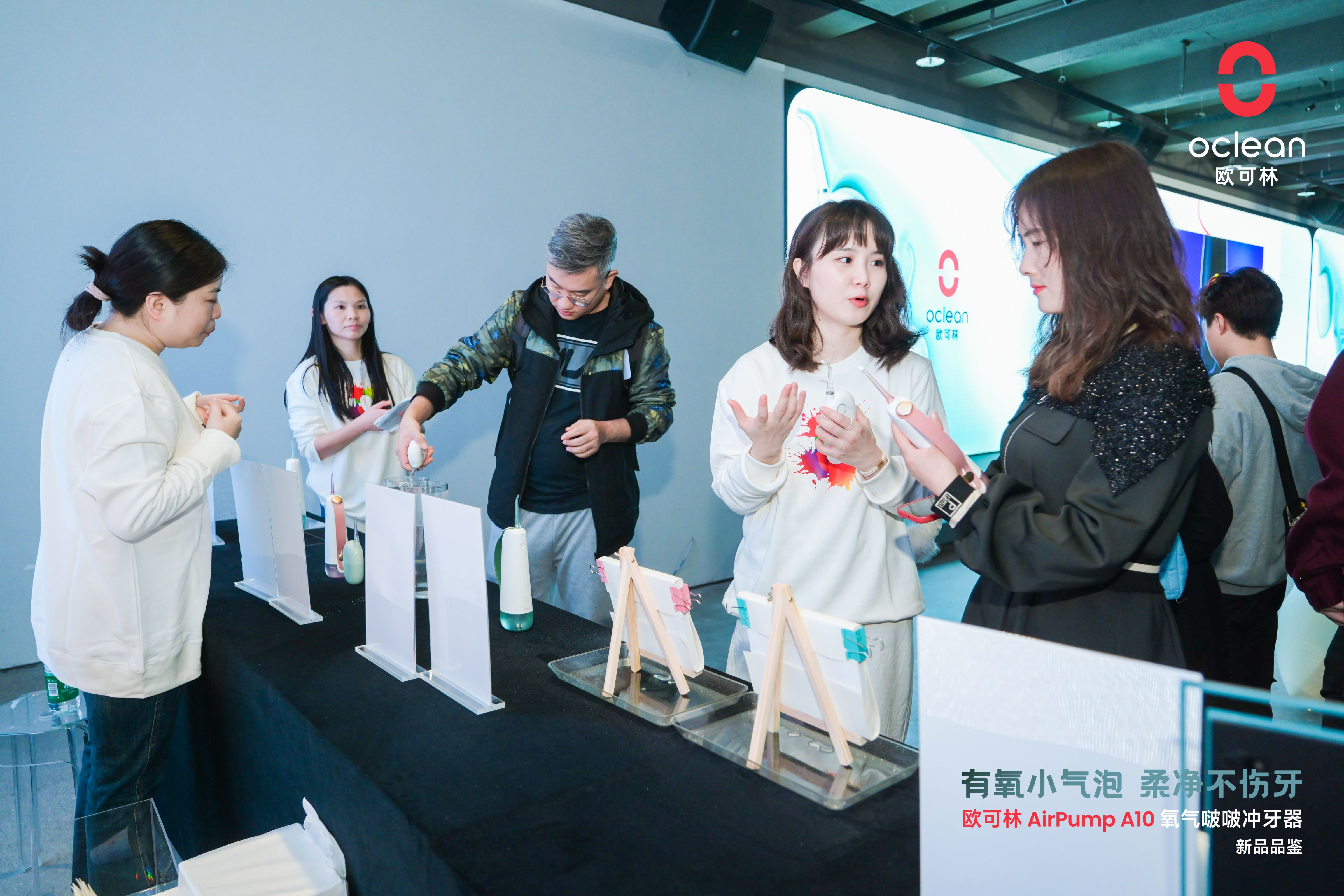 干货满满的演讲与讨论后,各位莅临活动的嘉宾、媒体与达人在现场体验新品、拍照打卡、交流体会,本次新品品鉴会也就此圆满落下帷幕。“首创Oclean AirPump护牙科技 有氧小气泡 柔净不伤牙”——欧可林AirPump A10氧气啵啵冲牙器 新品品鉴会,不仅展示了Oclean欧可林在口腔健康护理领域的强大实力与领先地位,也标志着欧可林AirPump A10氧气啵啵冲牙器正式吹响了国内市场的冲锋号。