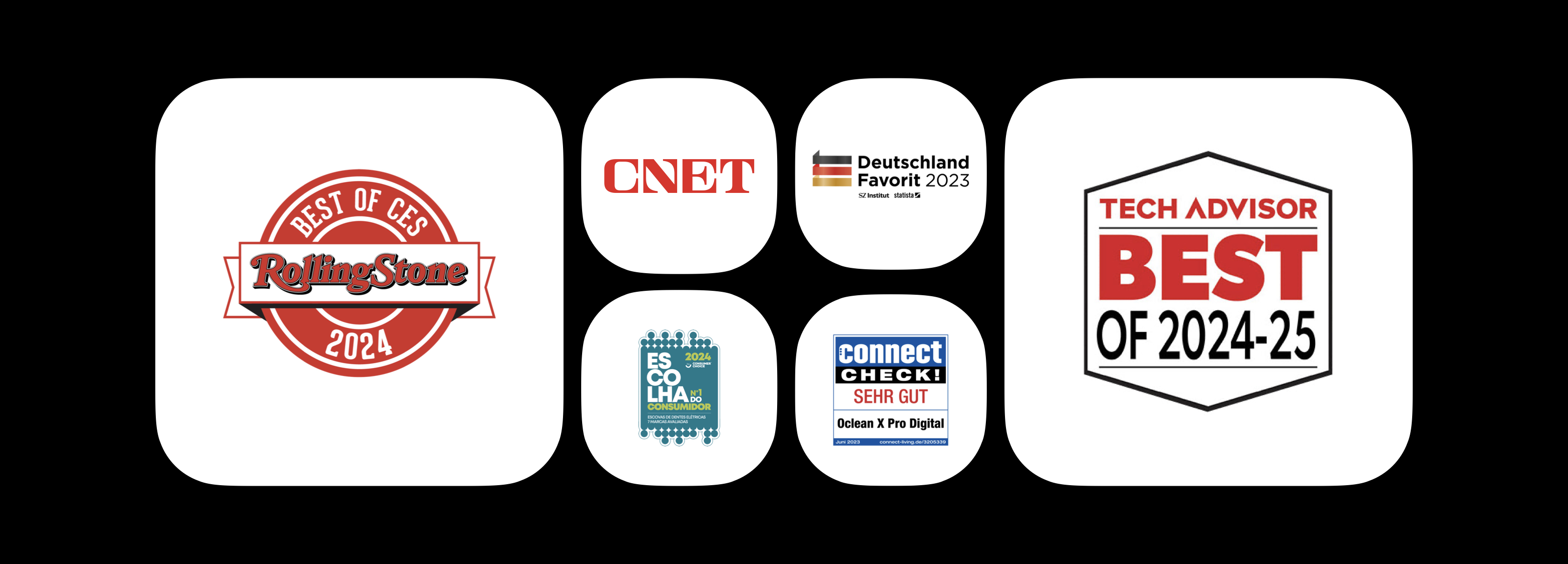Oclean欧可林不仅收获了全球消费者的喜爱,也获得Tech Advisor 2024-25年度技术顾问奖、CNET 2024年CES最佳产品、Rolling Stone 2024年CES最佳产品奖、Deutschland Favorit 2023德国最受喜爱产品奖、葡萄牙2024消费者选择奖、波兰牙医协会官方推荐等众多国际奖项与殊荣。