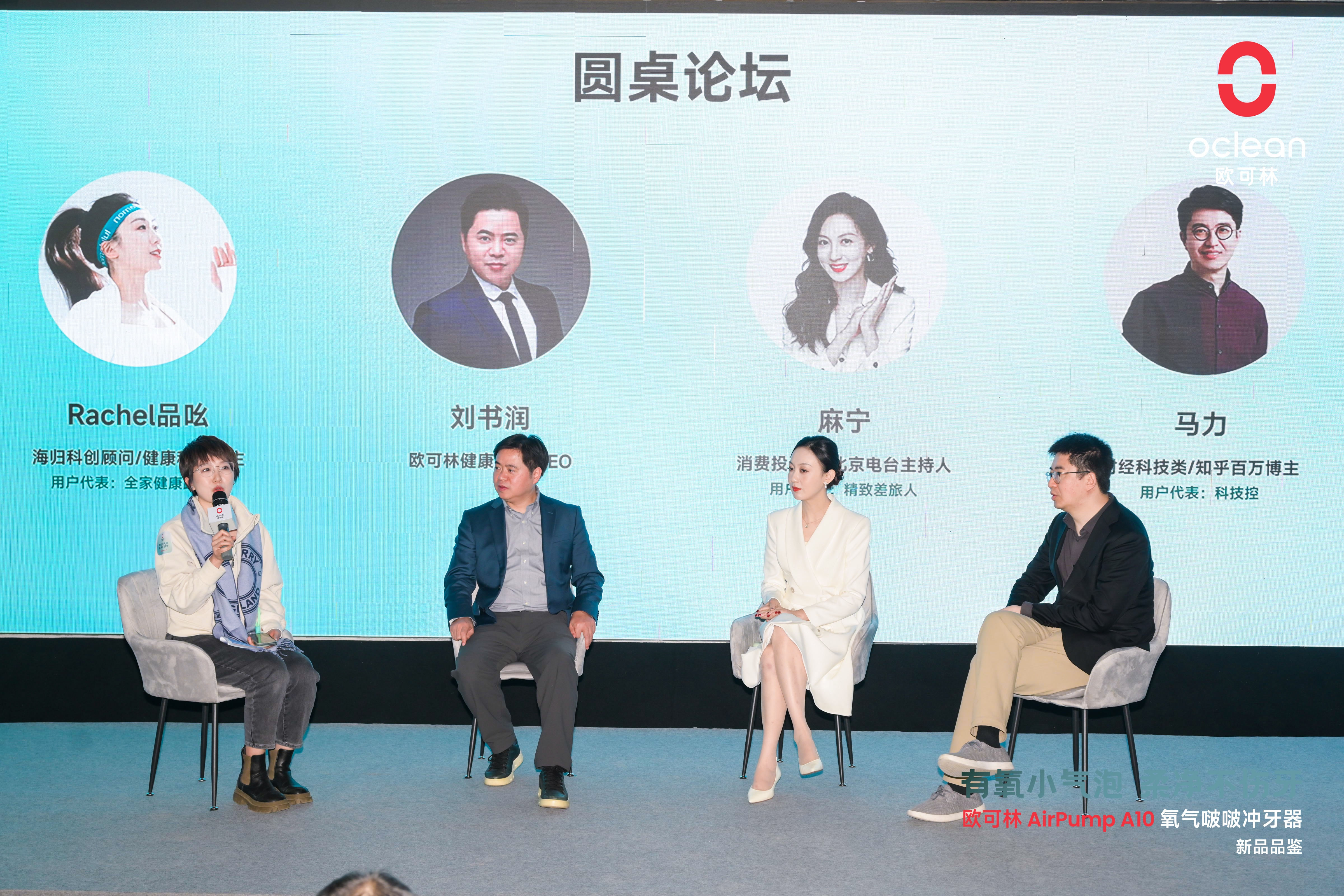 本次品鉴会还设置了一场别开生面的圆桌会谈,邀请了海归科创顾问、健康科普博主Rachel品吆,消费投资人、北京电台主持人麻宁,财经科技类知乎百万博主马力,与欧可林健康科技创始人兼CEO刘书润共同探讨欧可林AirPump A10氧气啵啵冲牙器的使用体验及其在口腔健康领域的创新价值。