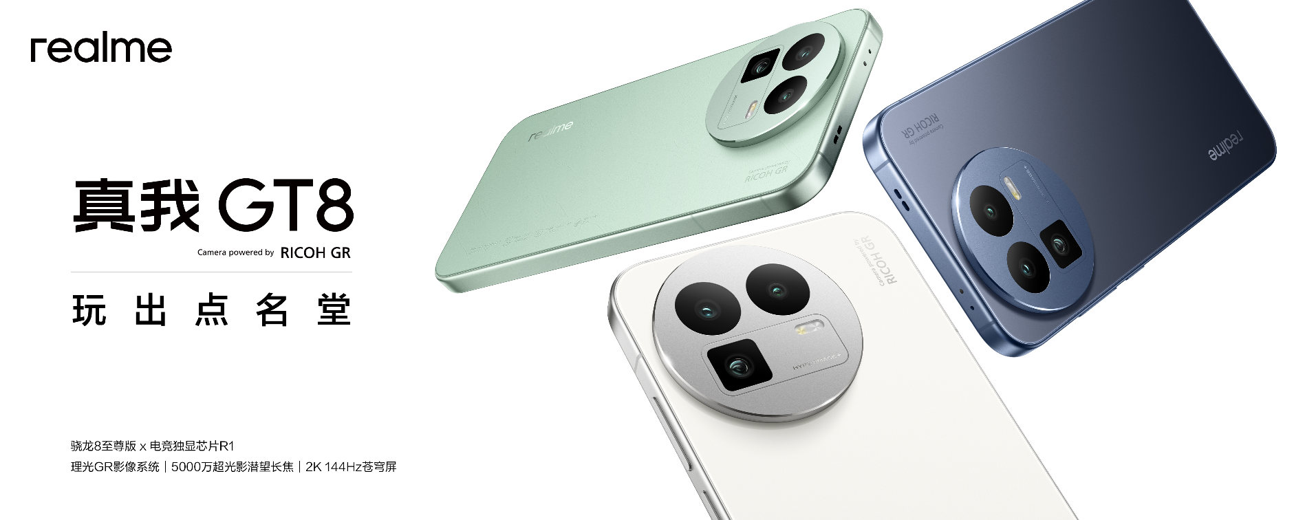 2025年10月21日—中国·北京——真我手机正式发布旗舰新品真我GT8系列。街拍神器真我GT8 Pro,凭借行业首发全链路深度定制的理光GR影像系统,打造前所未有的街拍体验。真我GT8 Pro还搭载了第五代骁龙8至尊版、2K 144Hz苍穹屏、同档唯一2亿超光影潜望长焦等旗舰配置,以真旗舰玩出点名堂。真我GT8 Pro将于10月21日16:40正式开售,起售价3999元。