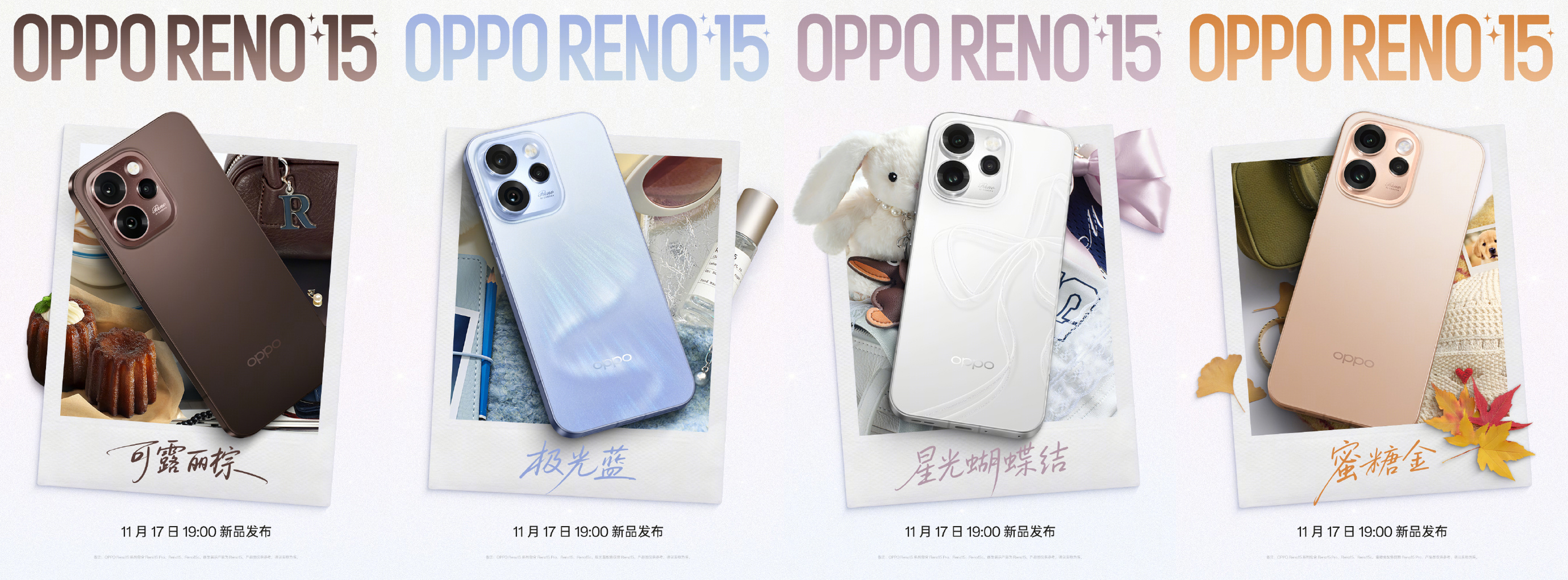 OPPO Reno15系列将于11月17日19:00正式发布,目前官网已开放新机预约。