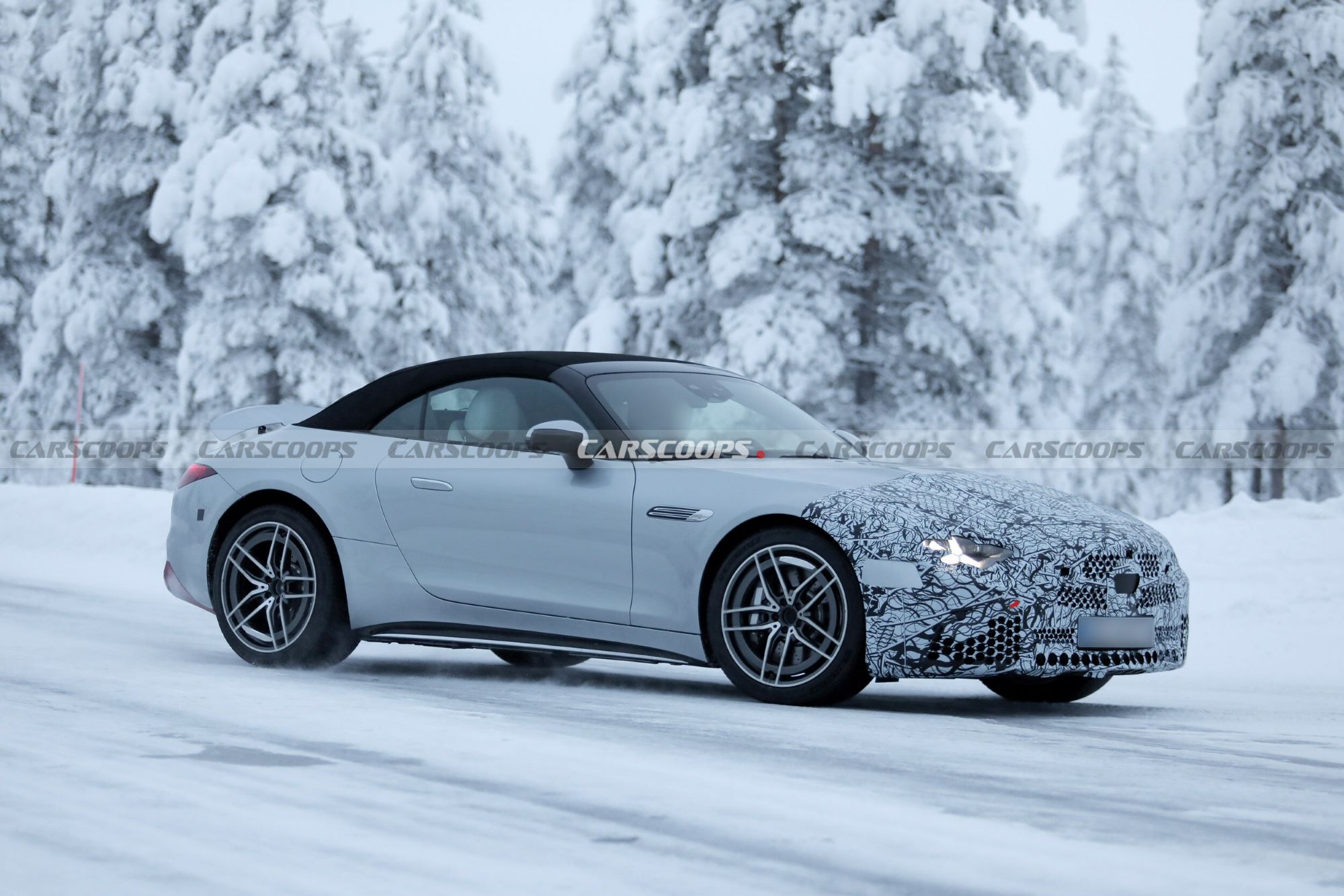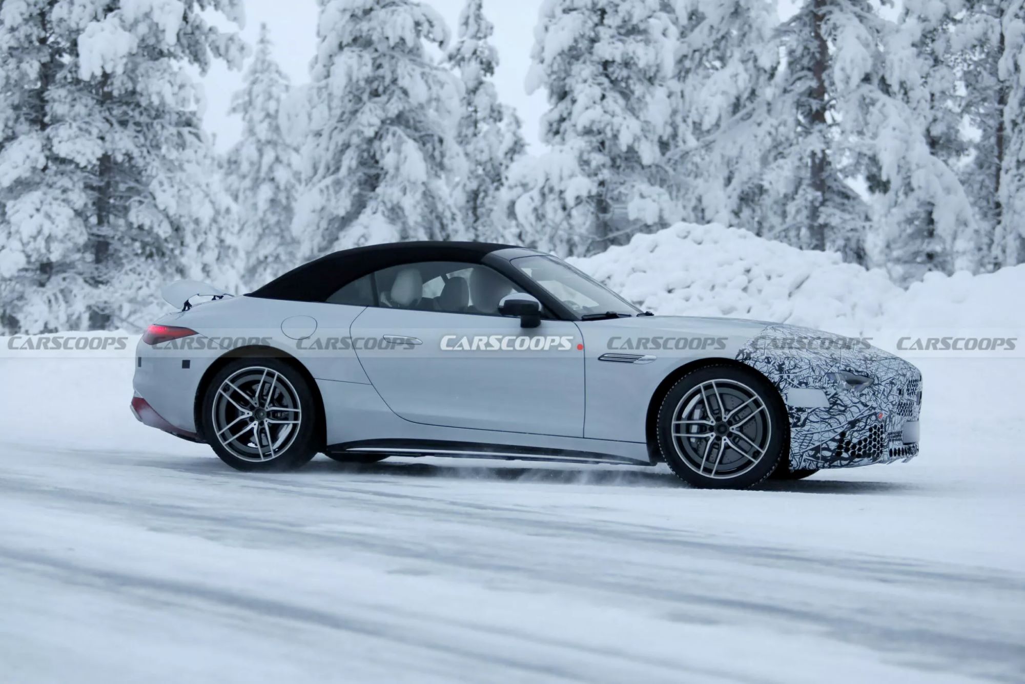 日前,外媒曝光了奔驰AMG SL小改款车型的路试谍照,2027款车型原型车已完成冬季测试,新车将在外观、内饰与动力方面迎来全面升级。