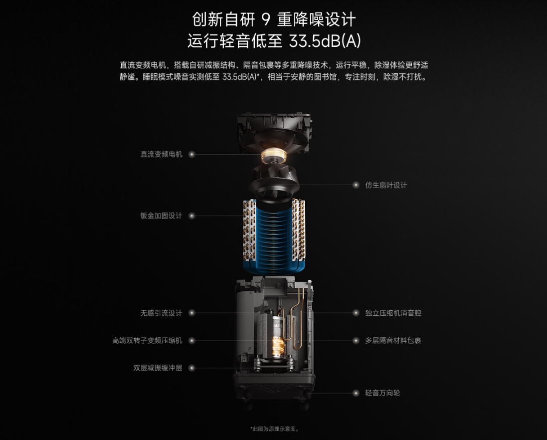 噪声方面,米家变频净化除湿机Max采用自研9重降噪设计,在设备开启睡眠模式时运行噪声低至33.5dB(A)。