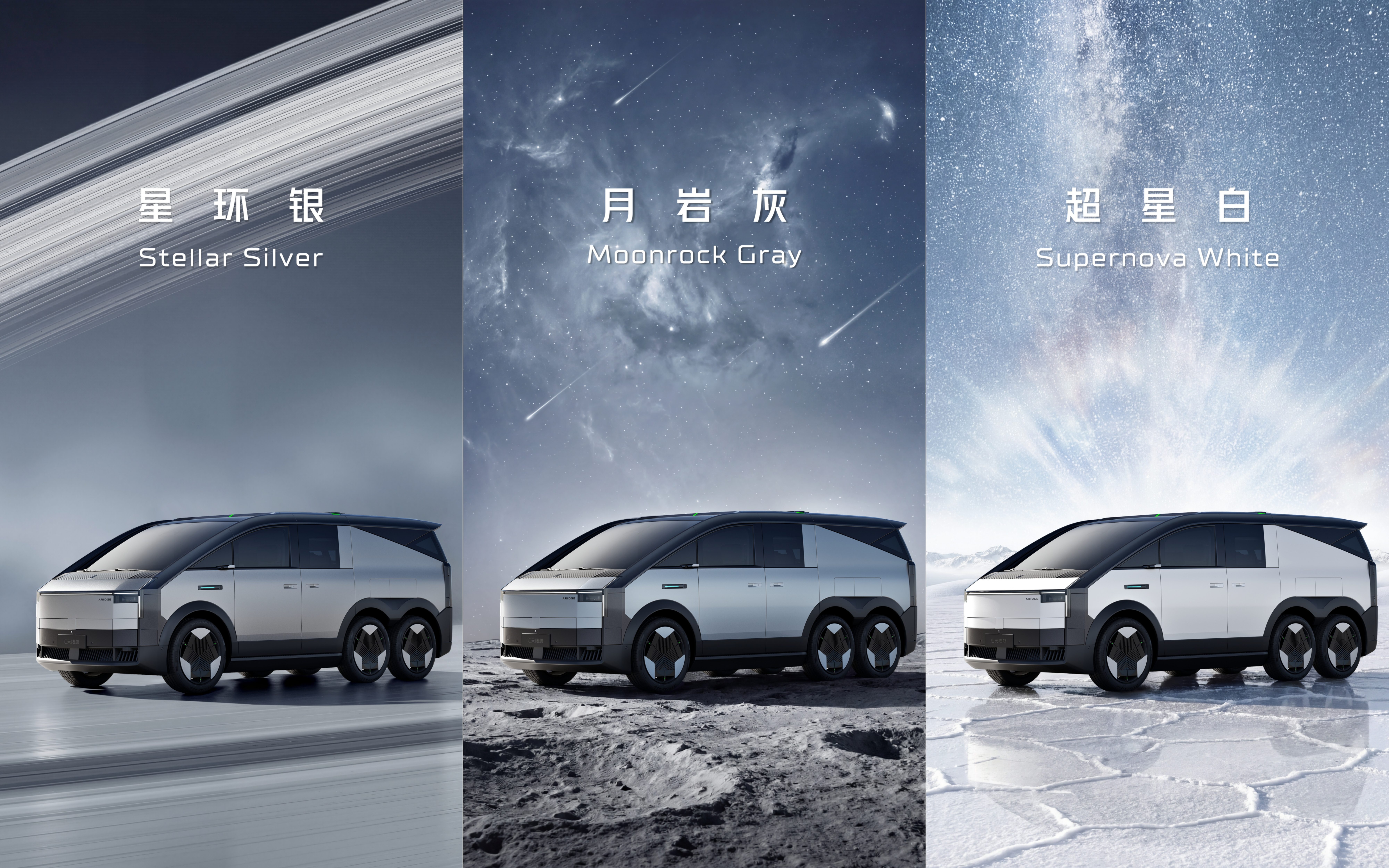 1月30日,广东汇天航空航天科技有限公司@汇天ARIDGE官方公布了“陆地航母”的三款车色,分别为星环银Stellar Silver、月岩灰Moonrock Gray、超星白Supernova White。