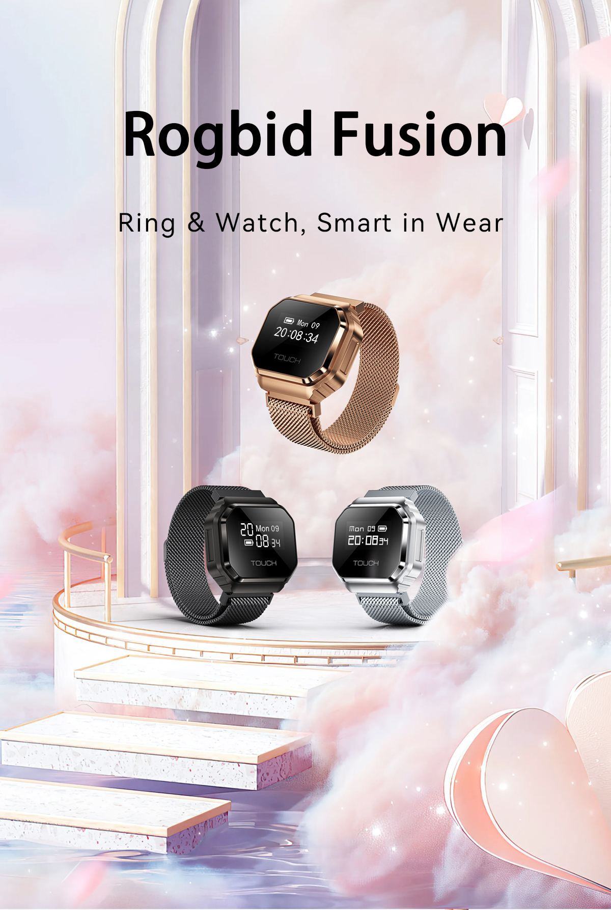 1月30日,Rogbid官方推出一款二合一智能戒指手表——Rogbid Fusion,售价49.99美元(折合人民币约347.35元)。