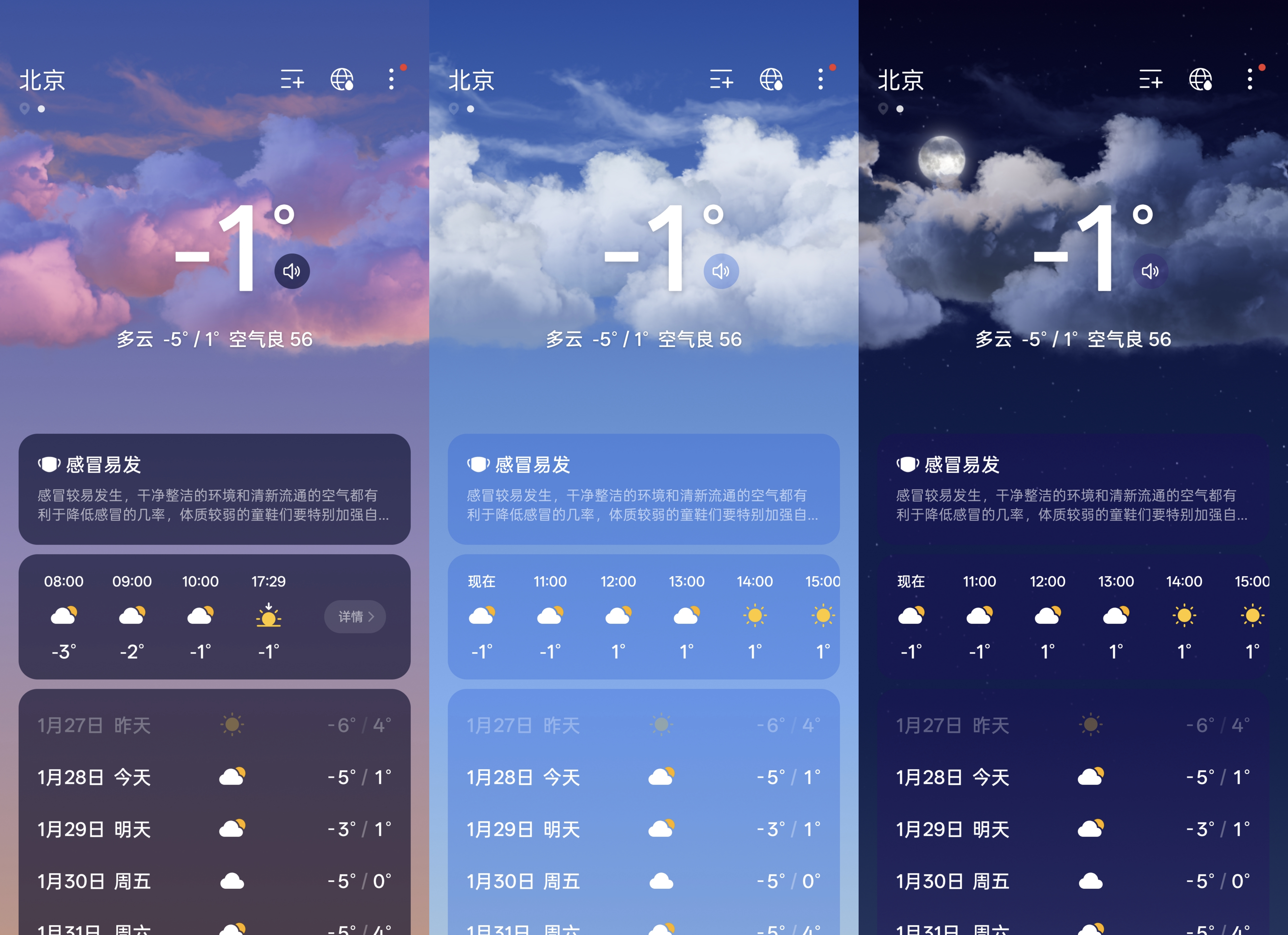 流畅稳定只是基础,功能丰富程度能更大程度上决定系统的上限。对于ColorOS16,我没有太多能挑剔的地方,之前诟病的自带天气APP查看天气详情跳转浏览器、底下一堆广告等问题早已得到解决,现在的天气APP界面更美观,场景还会随着时间变化而变化,长按主界面还会触发类似“延时摄影”的效果。