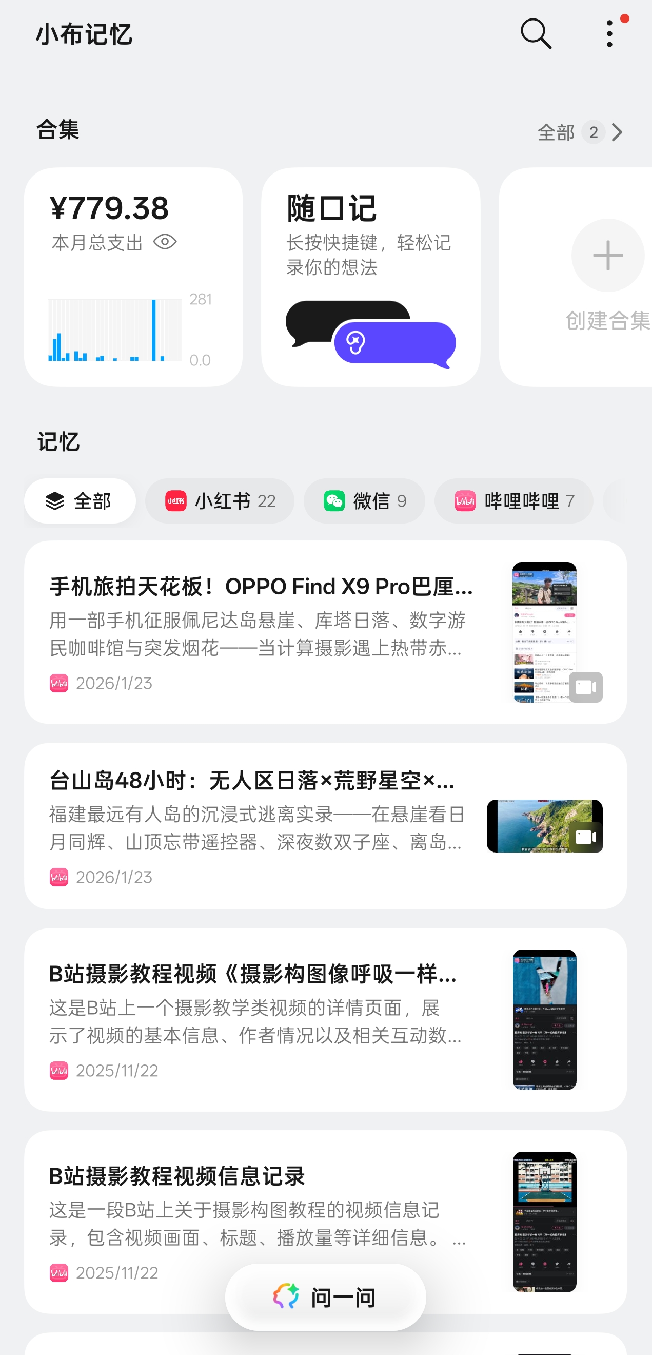 还有一键记视频,提取视频核心信息并生成AI章节摘要,视频不用看,也能快速了解重点信息,点击章节,还会直接跳转到视频中对应的节点;一键记账单,点外卖、网购甚至是纸质小票都能记,部分应用还支持自动记账,不过因为一些应用权限等多种限制,刚开始支持自动记账的部分应用逐渐开始不支持,自动记账依旧停留在测试阶段,后续不知道还有没有机会体验到这个功能的完全体。