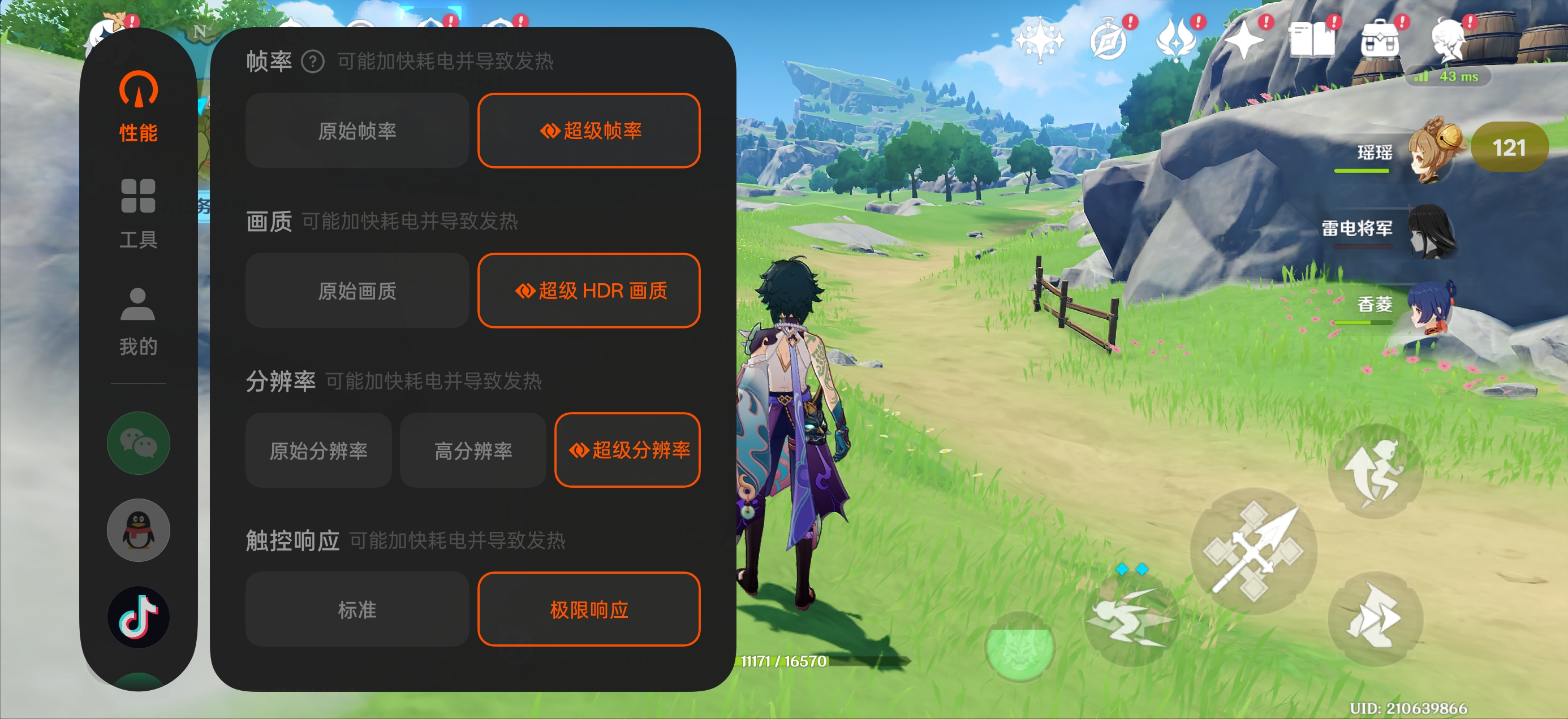 在手机自带的游戏助手内,还有超级帧率和超高画质选项,最高可达到120帧+2772x1272分辨率,画质与流畅度均达到顶峰,带来更极致的游戏体验。