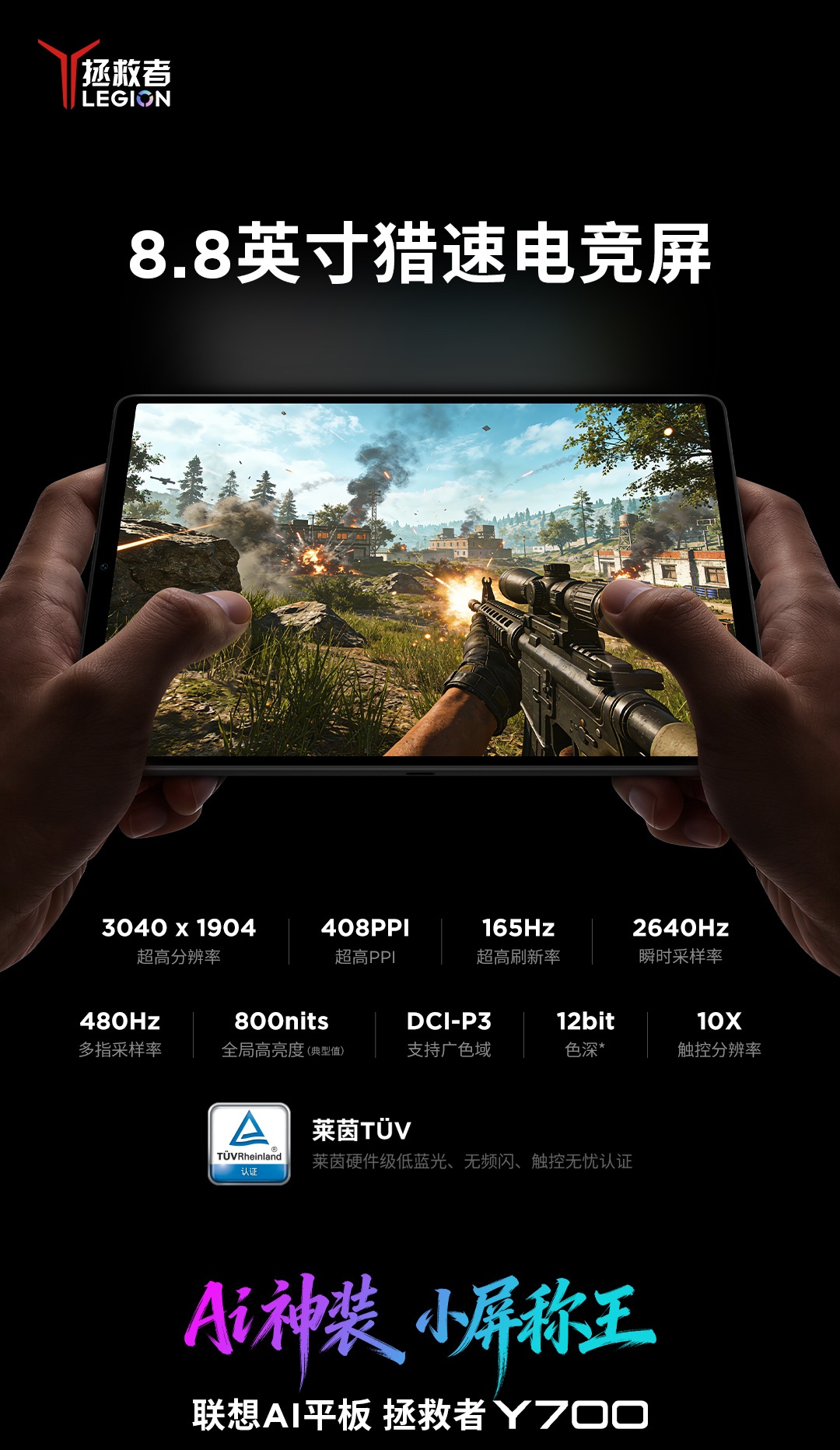2月9日,@联想拯救者官方释出了“联想AI平板”拯救者Y700的预热海报,号称“8.8黄金尺寸,一眼定乾坤”。