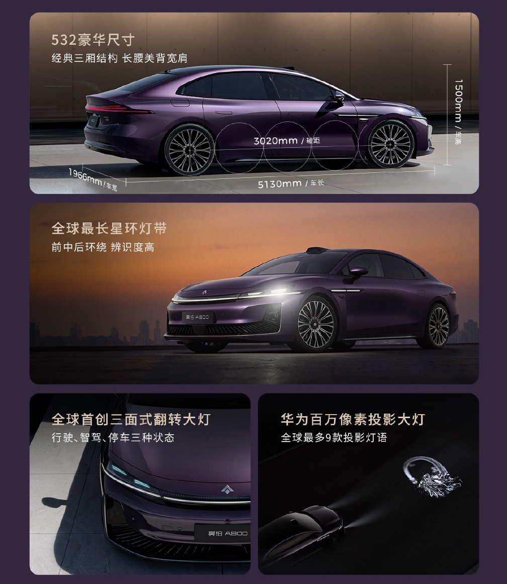 据了解,昊铂A800定位“智慧旗舰轿车”,采用经典三厢结构设计,车身尺寸5130*1966*1500mm,轴距3020mm,同时前脸拥有号称“全球最长星环灯带”,辨识度高。在驾控方面,该车延续了广汽底蕴,配有双腔空悬+SDC电磁悬架、前双叉臂+后高性能多连杆,可兼顾到复杂路况的通过性与全场景驾驶的舒适性。