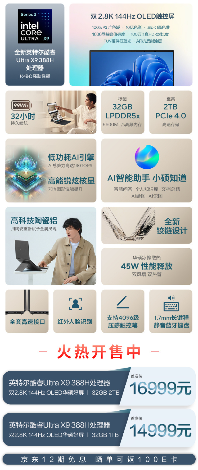 ● 双2.8K 144Hz OLED触控华硕好屏