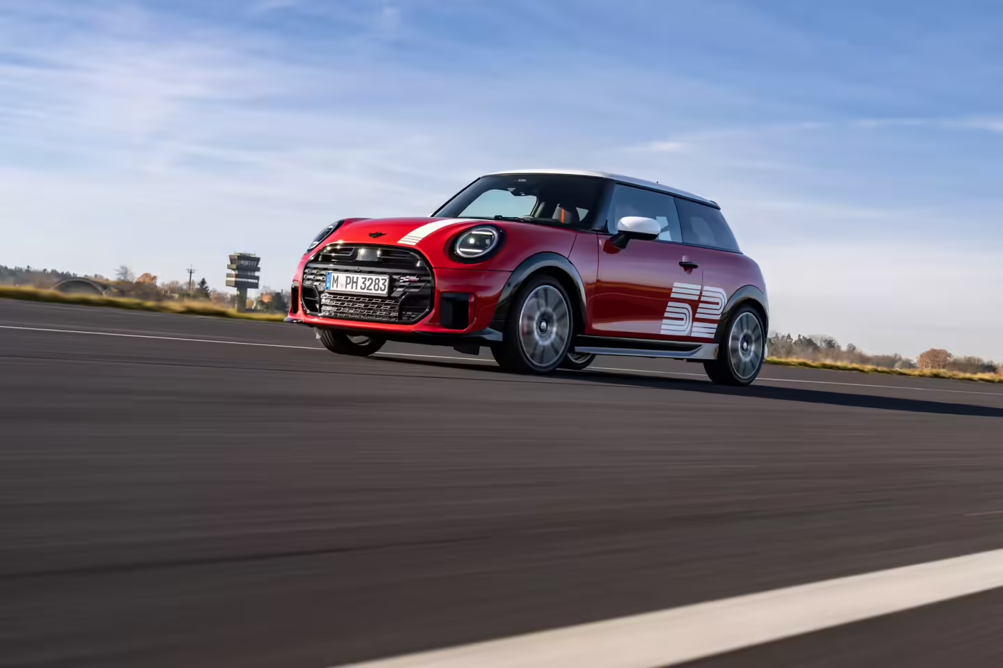 JCW纯电版(John Cooper Works Electric):配备49.2千瓦时电池组,电机最高输出255马力(190千瓦),零百加速仅需5.9秒。在英国测试标准下,其纯电续航里程可达364至402公里。