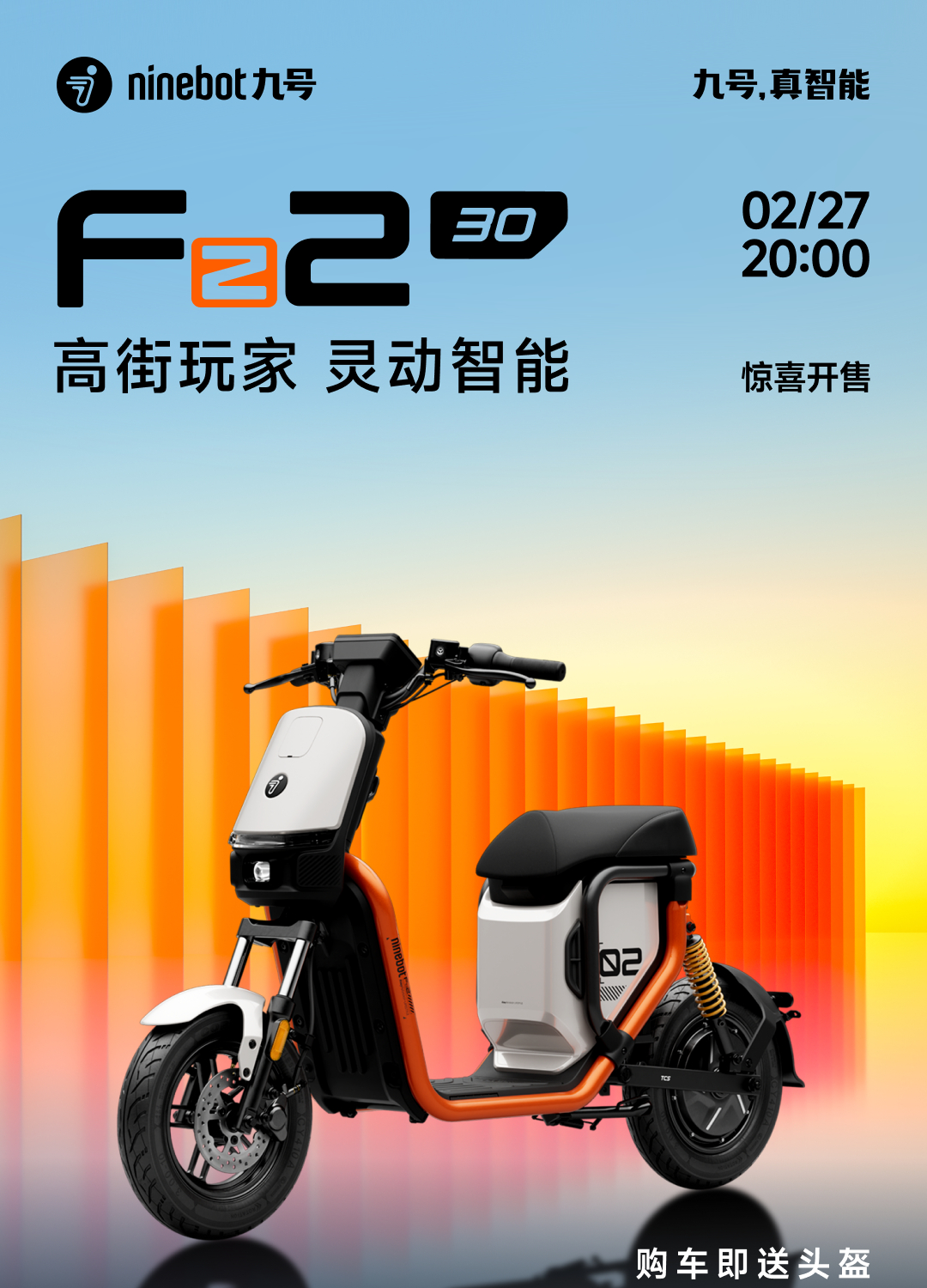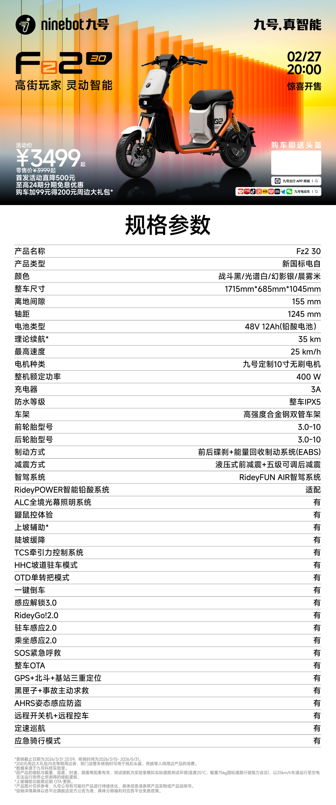 大阳2月27日,九号电动车官宣了九号Fz2 30新国标电动车将于今晚20:00开售,新品首发直降500元,到手价3499元起。