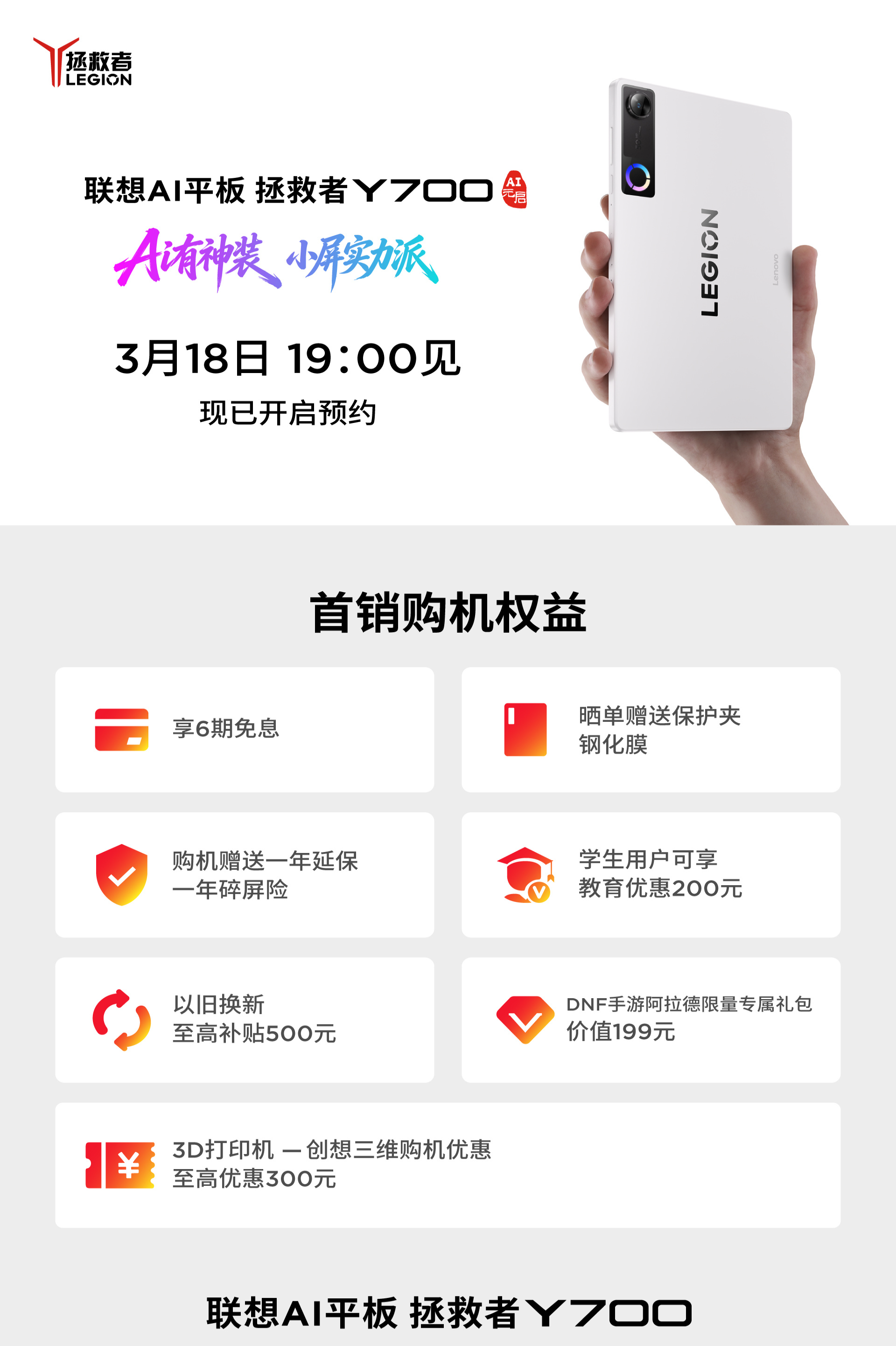 3月4日,联想正式官宣拯救者Y700将于3月18日19:00发布,现已开启预约。根据此前官方消息,拯救者Y700将搭载第五代骁龙8至尊版处理器,搭配LPDDR5T+UFS 4.1Pro,安兔兔综合跑分4532189。