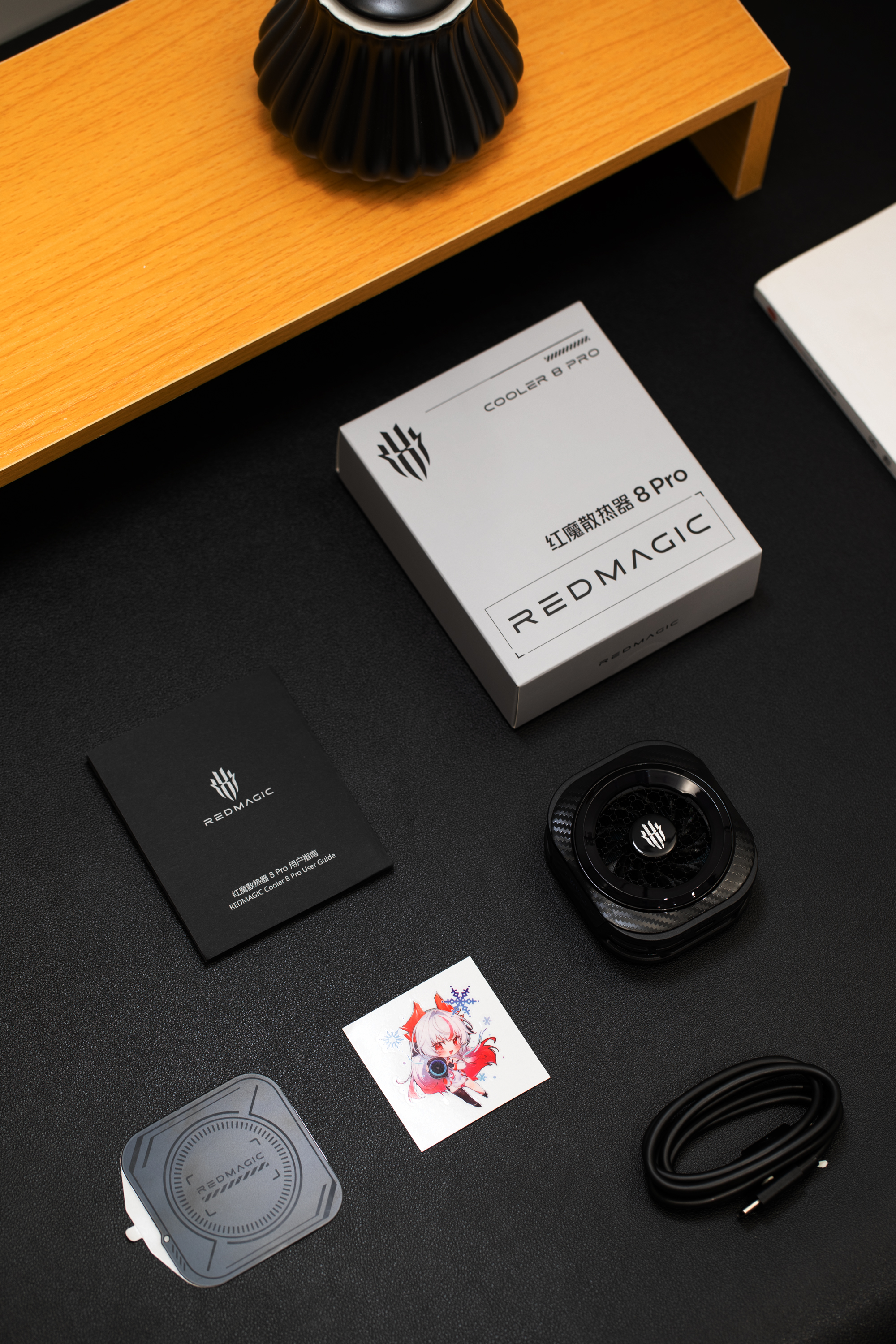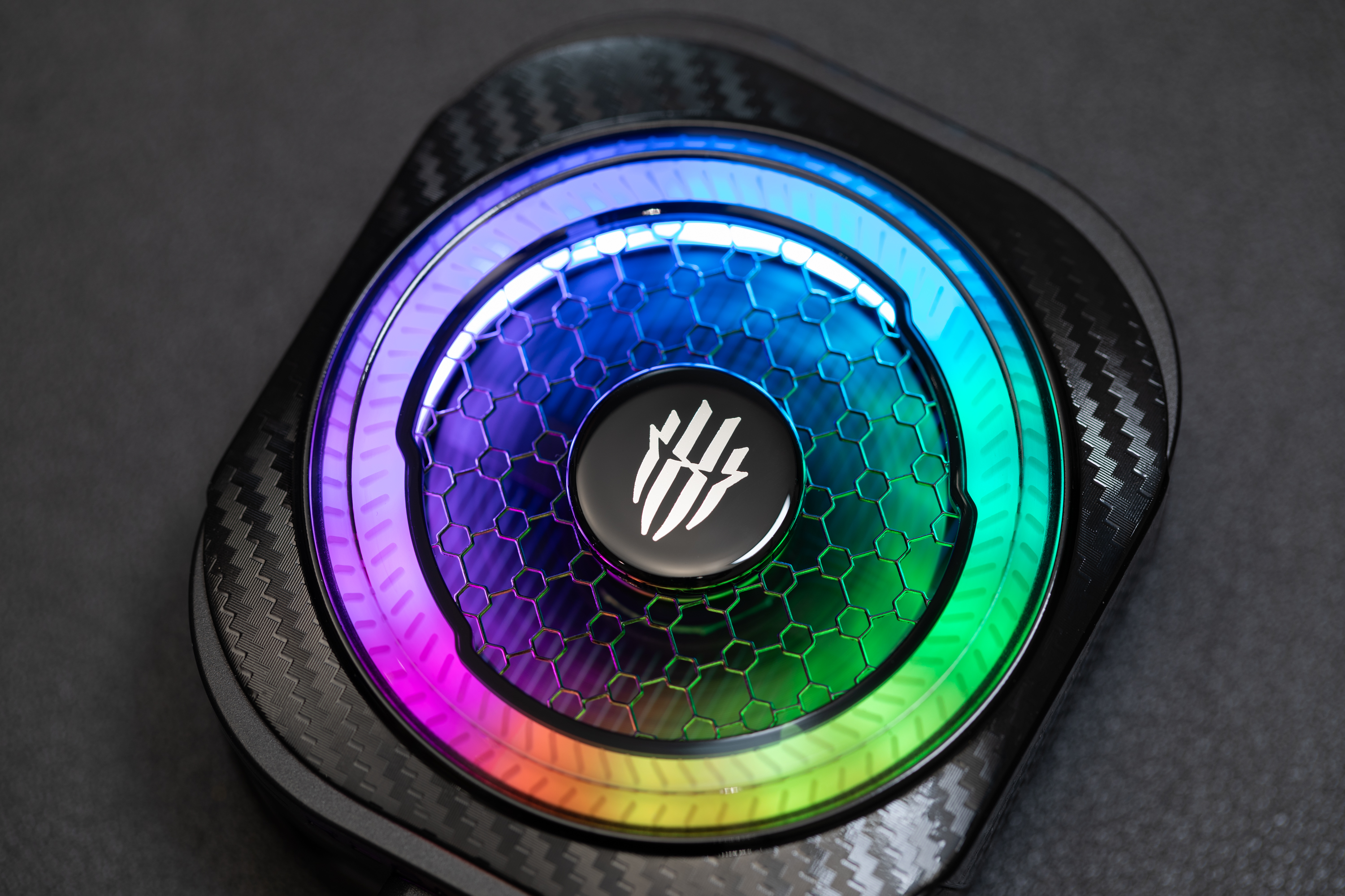 红魔散热器8 Pro延续家族式硬核电竞风格,机身以黑色为主色调,搭配碳纤维纹理点缀,提升了视觉层次感。