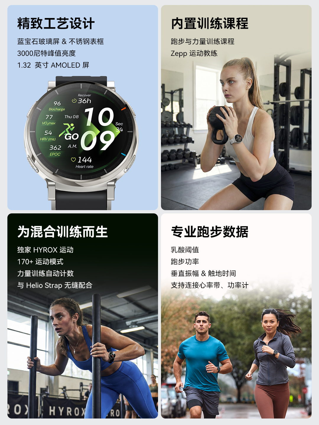 ●多场景训练:内置Zepp Coach自适应训练计划,覆盖跑步、力量训练及健身课程,提供跑姿监测、步频分析等进阶数据。