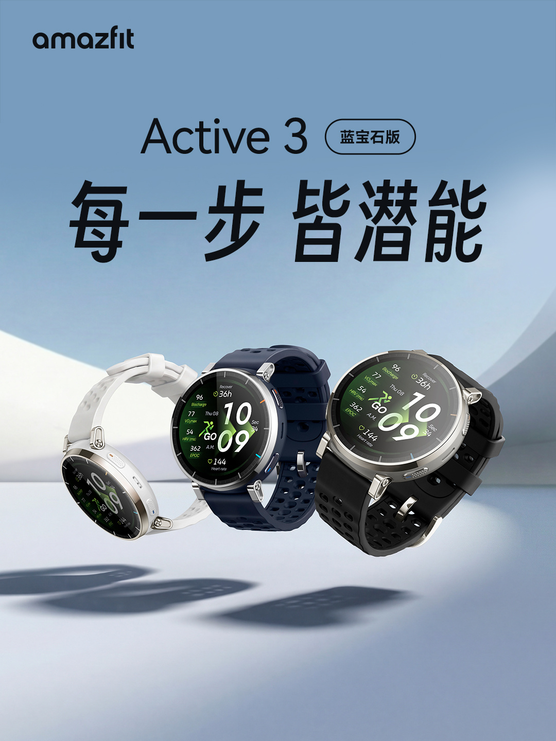 3月5日,华米宣布Amazfit Active 3蓝宝石版正式开售。新品面向入门级跑者及混合训练爱好者,兼顾日常佩戴需求,提供顶峰银、阿特拉斯蓝、航天白三种配色,售价为1199元。