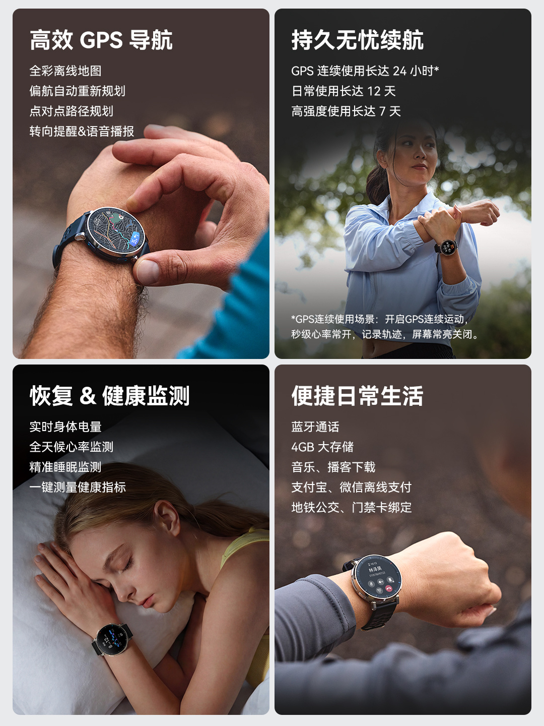 ●导航与离线功能:高效GPS定位系统,支持离线地图、逐向导航,内置4GB存储空间可保存地图与播客内容。