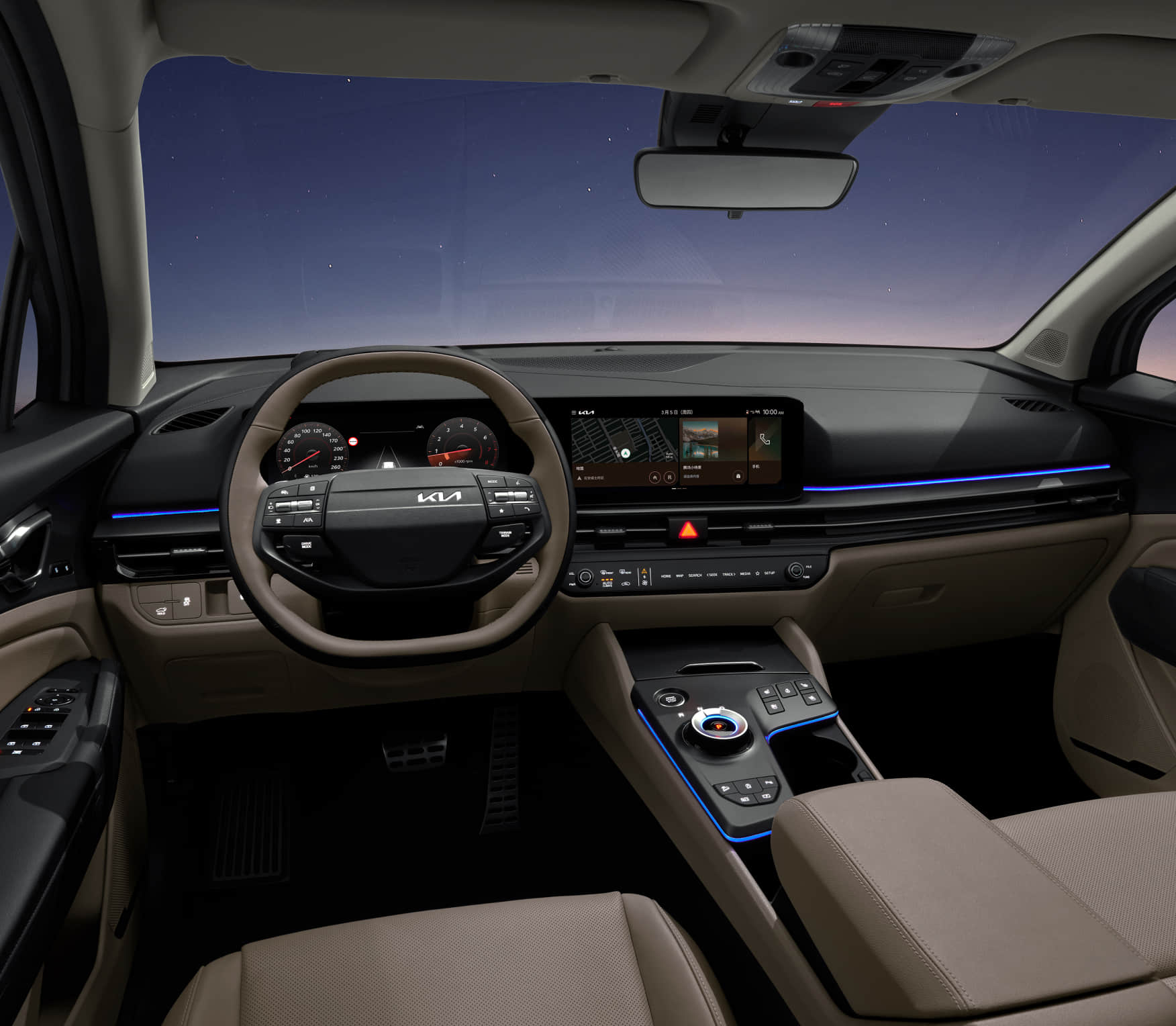 内饰方面,起亚新狮铂拓界配备了超宽域全景曲面屏、真皮包裹的双幅式方向盘、驾驶席电动座椅、多色动态氛围灯等,还在车门与中控台饰板用上了木纹、金属拉丝等材质,以及提供黑色、黑咖、黑红三种内饰配色可供选择。
