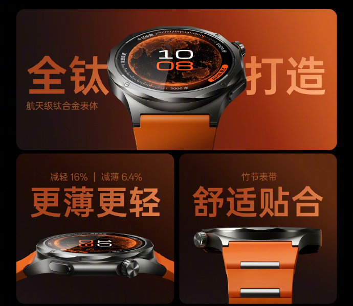 在外观方面,OPPO Watch X3采用了航天级钛合金打造表体部分,相比前代,整机重量和厚度均有降低。