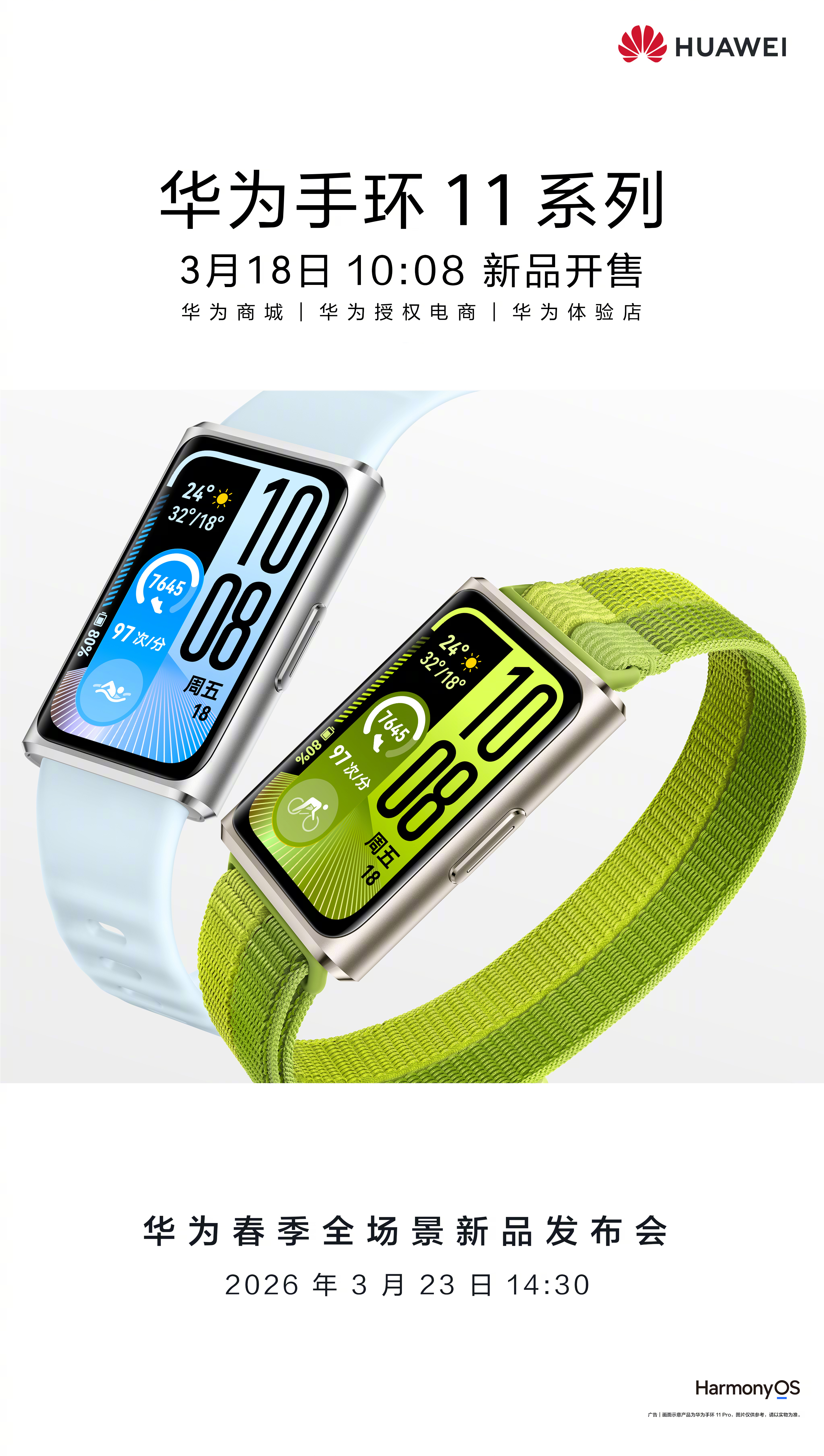 3月18日,华为手环11系列已正式开售,其中聚酯纤维机身标准版首发售价259元,铝合金标准版售价279元,NFC版售价309元;华为手环11 Pro铝合金机身氟橡胶表带款首发售价369元,原野绿编织表带款售价379元。