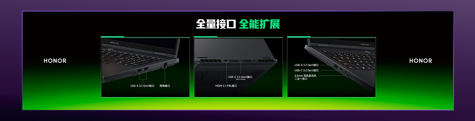 设计方面,该机采用了极简风。A面线条锋锐硬朗;B面配有16英寸180Hz高刷的LCD电竞大屏,500nit亮度,分辨率为2560*1600,兼顾到流畅画面与舒适观感;C面则配备全尺寸背光键盘;整个机身薄至22.65mm,轻至2.27kg。接口方面,WIN游戏本H7提供了3个USB-A 3.2 Gen1、1个USB-C 3.2 Gen1、1个USB-C 3.2 Gen2、满血HDMI 2.1-FRL、RJ45网口等丰富接口。