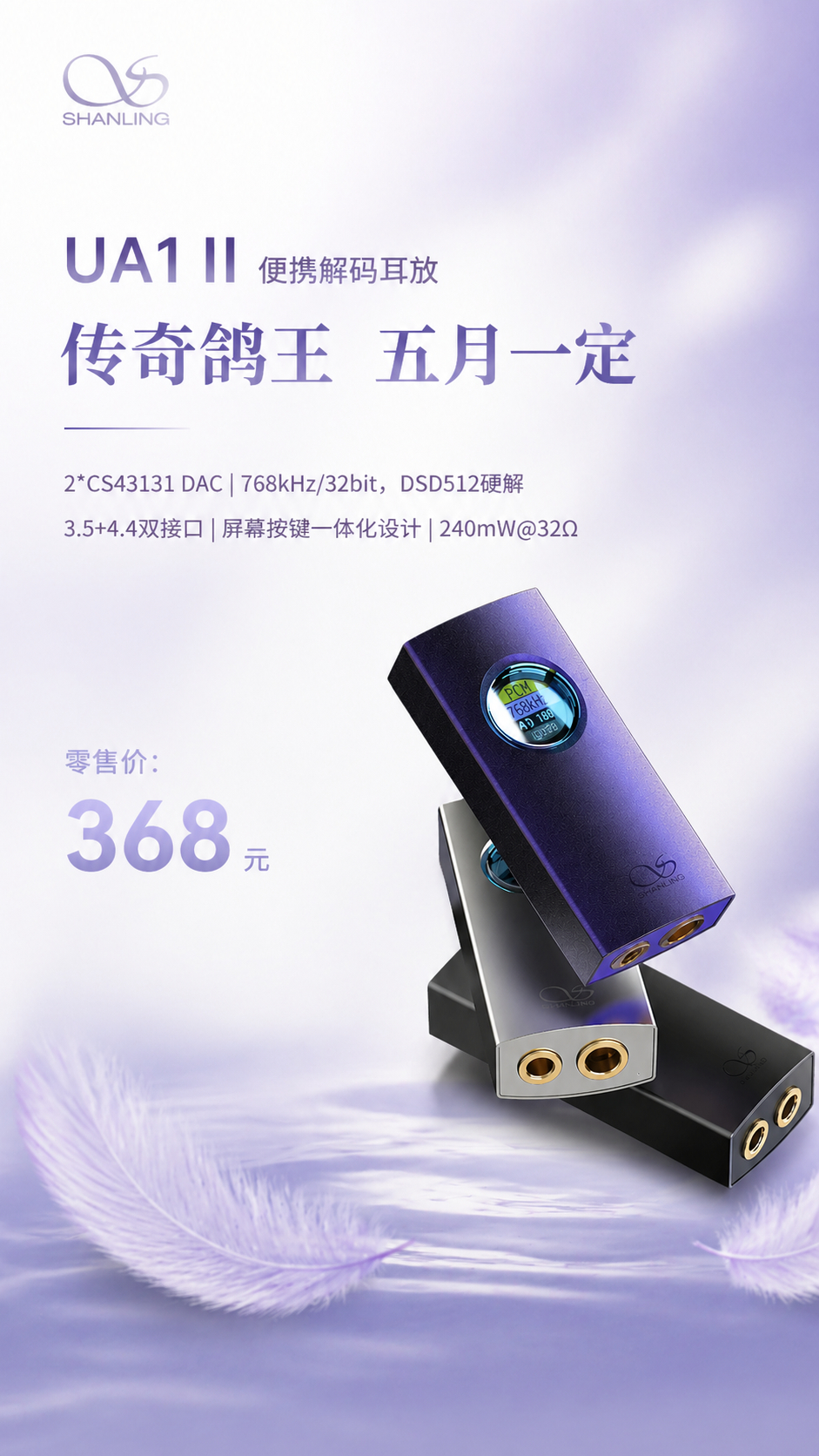 山灵官方于今日宣布,山灵UA1 II便携解码耳放将定档5月正式发售,零售价为368元。